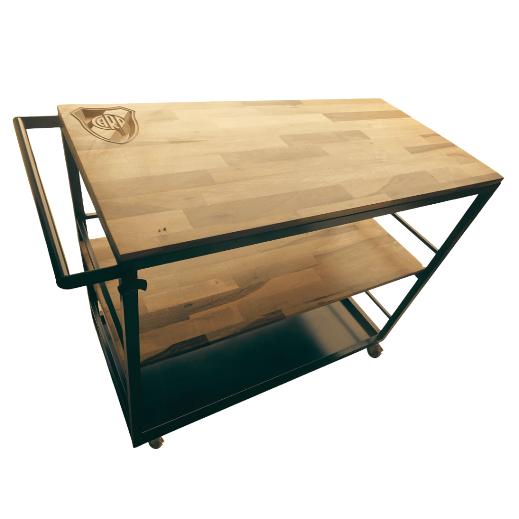 Barra de asado fabricada artesanalmente, combinando madera maciza de guayubira con una estructura reforzada de hierro, y el escudo de River tallado. Diseñada para uso en quinchos, galerías o espacios gourmet, con un estilo robusto e industrial. Consultá por tu tallado personalizado!